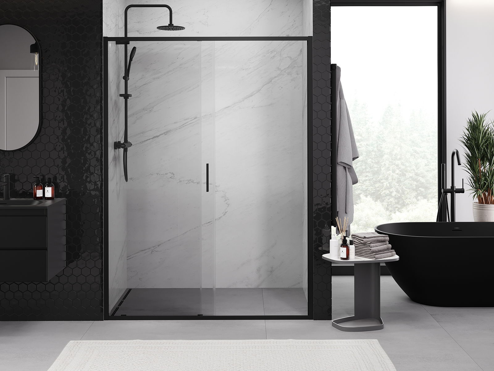 Sliding doors move along special guides and do not require additional space to open them, making them ideal for smaller bathrooms. Thanks to the double rollers with a metal body, their movement is smooth.