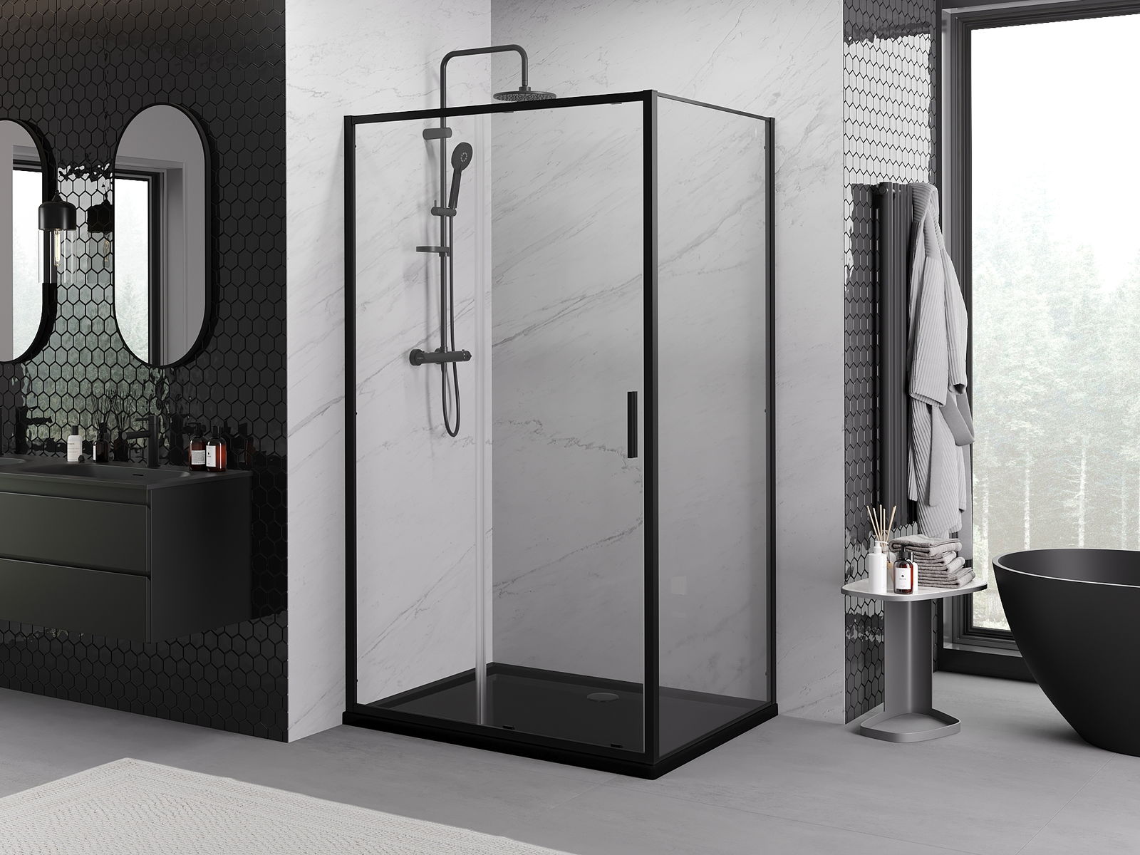 Thanks to the use of a universal mounting system, shower doors can be installed on the right or left side, depending on your needs. This allows you to easily design a shower tailored to the bathroom space.