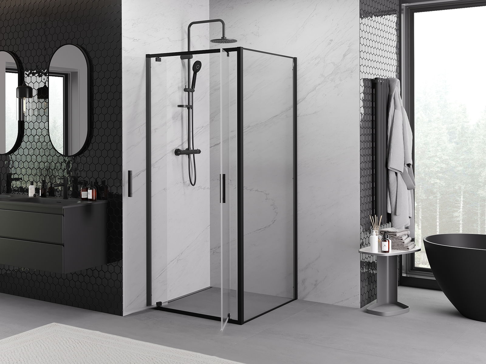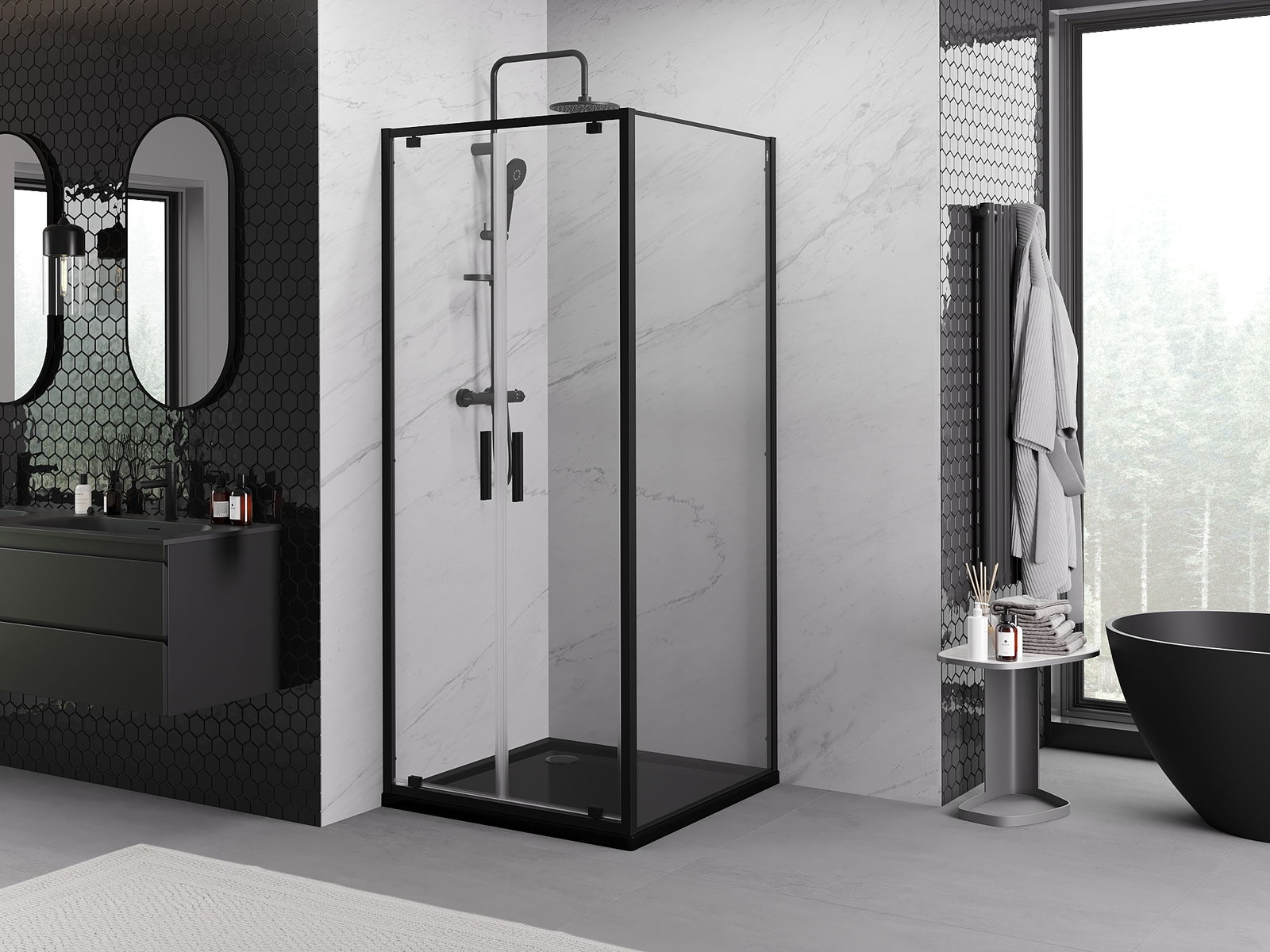 Mexen Exo swinging shower cabin 110 x 110 cm, transparent, black - 8182-110-110-70-00