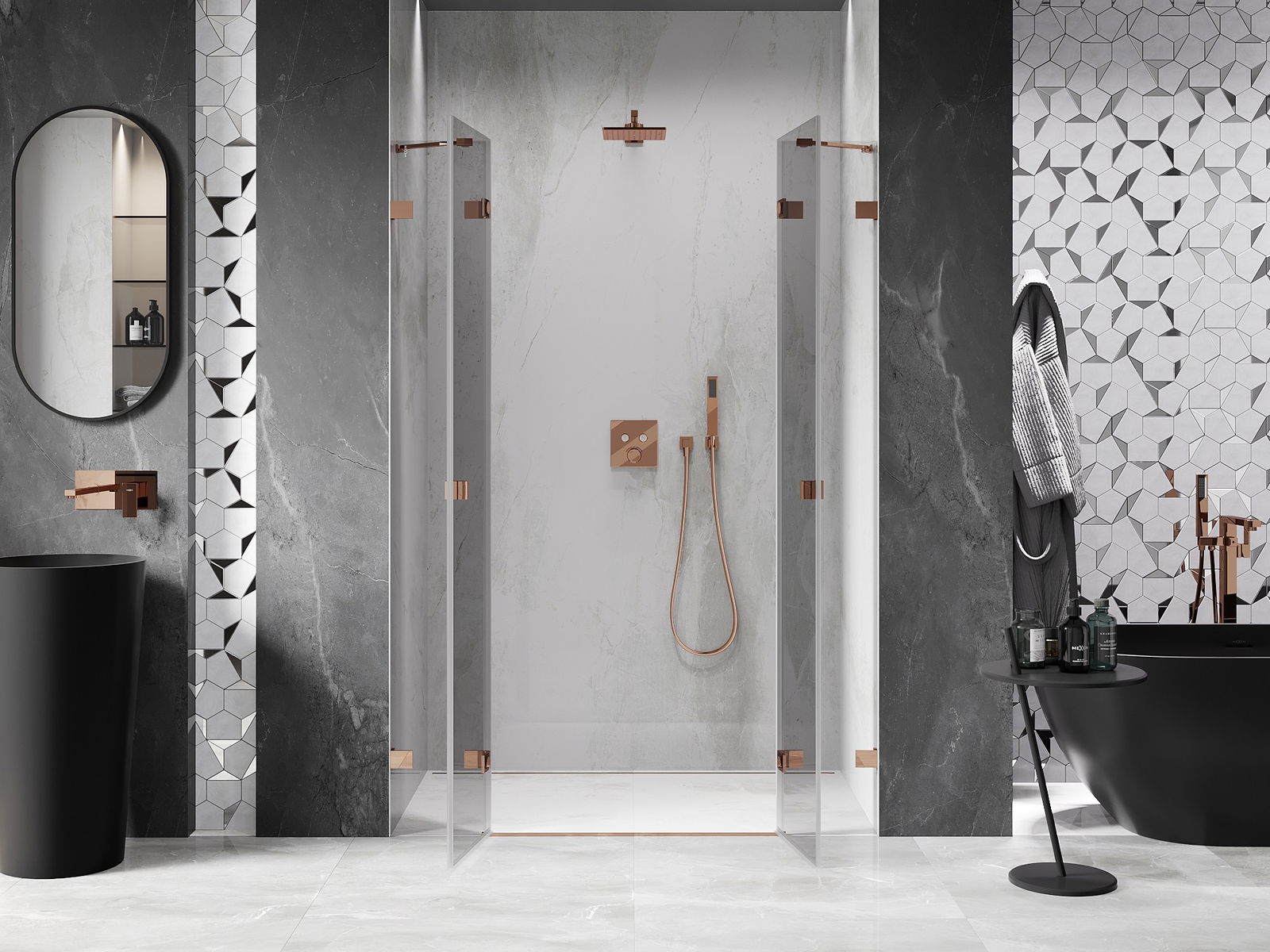 A handy and comfortable handle made from durable and resistant metal. Its trendy shape combined with a finish matched to the colour of the profiles gives the whole a modern and stylish look, highlighting the aesthetics of every bathroom.