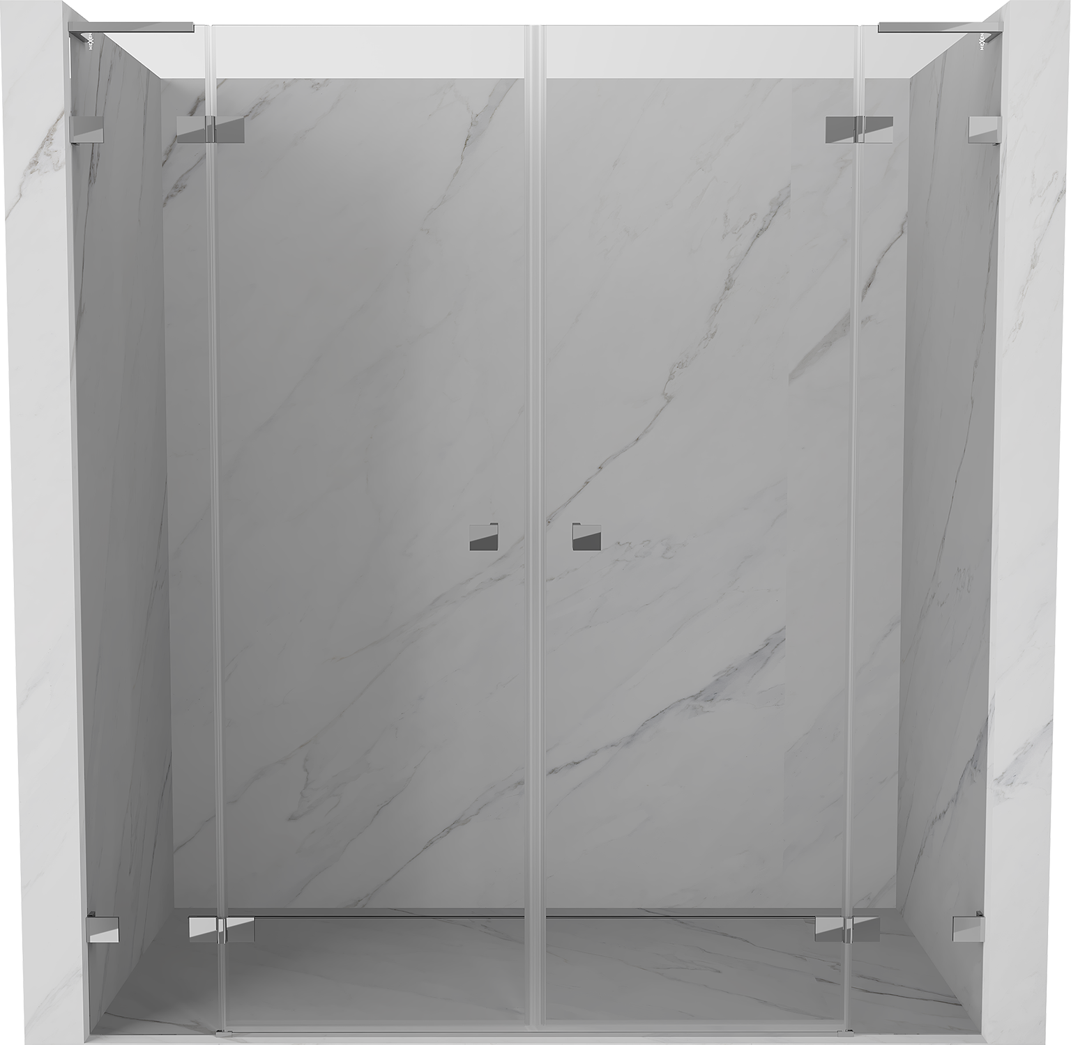 Brass handles and hinges flush with the glass surface