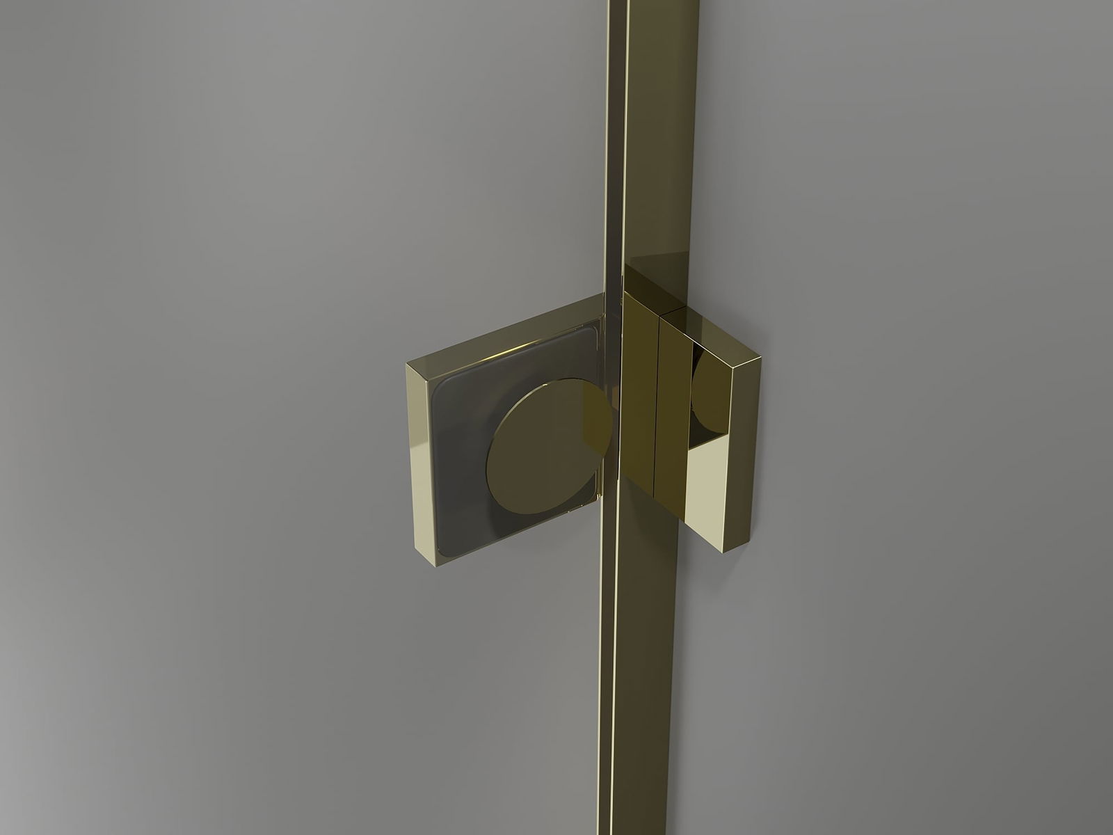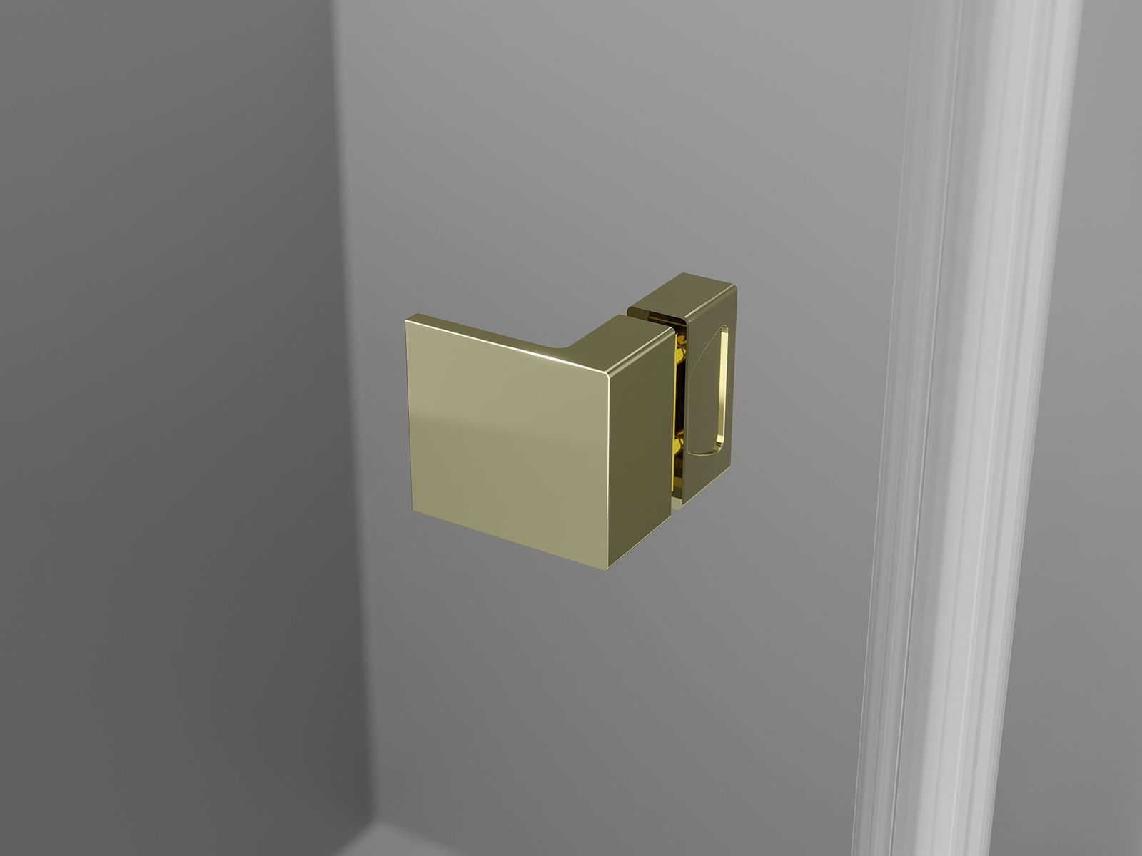 Brass handles and hinges flush with the glass surface