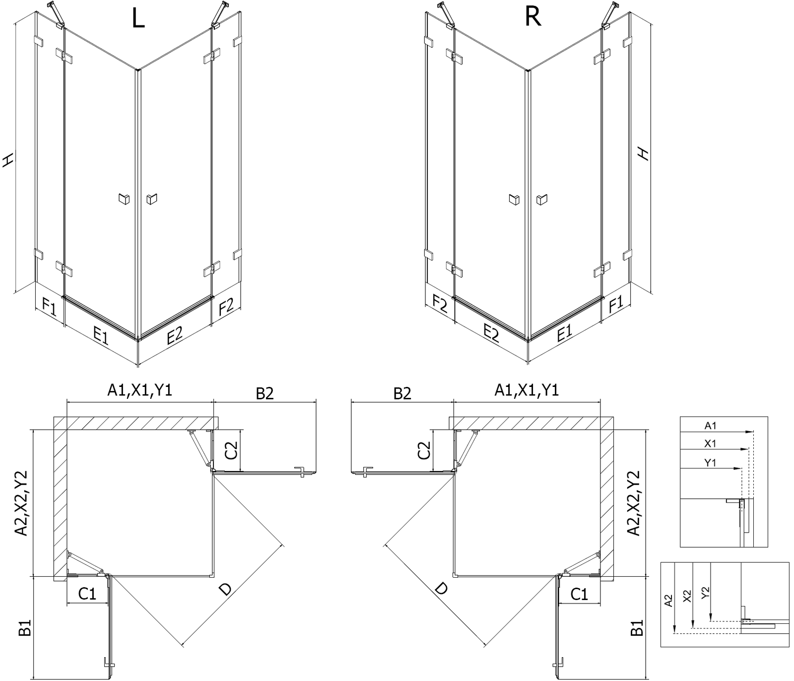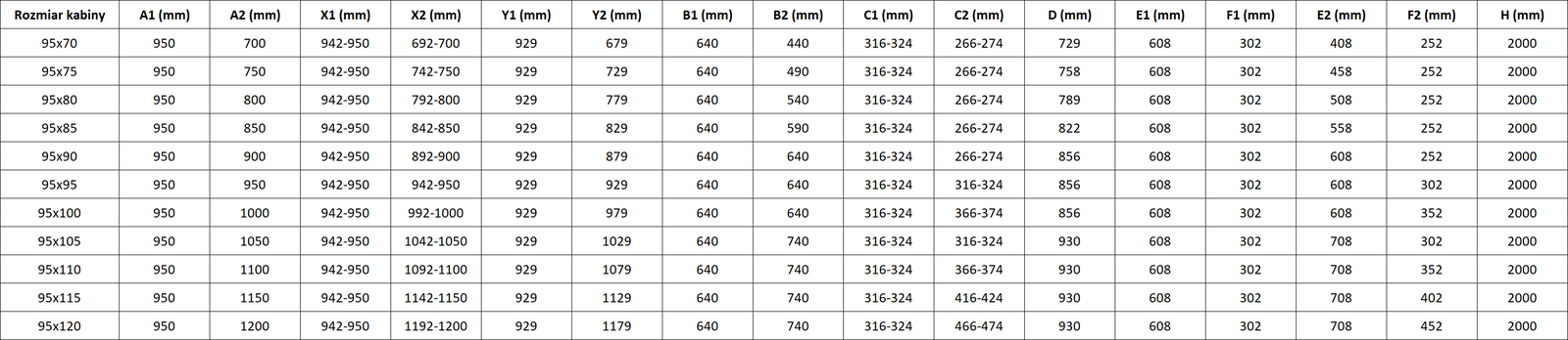 Size: 95x85 cm (right door 95 cm, left door 85 cm)