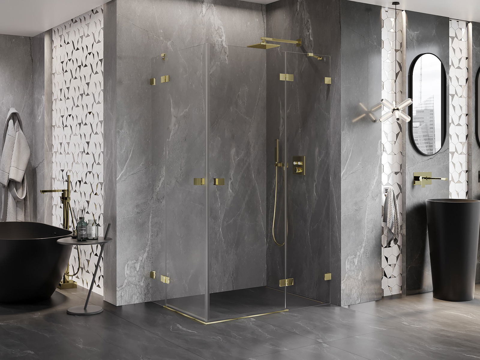 Mexen Lunar Duo shower cabin hinged right 95 x 85 cm, transparent, gold - 834-095P-085L-50-00