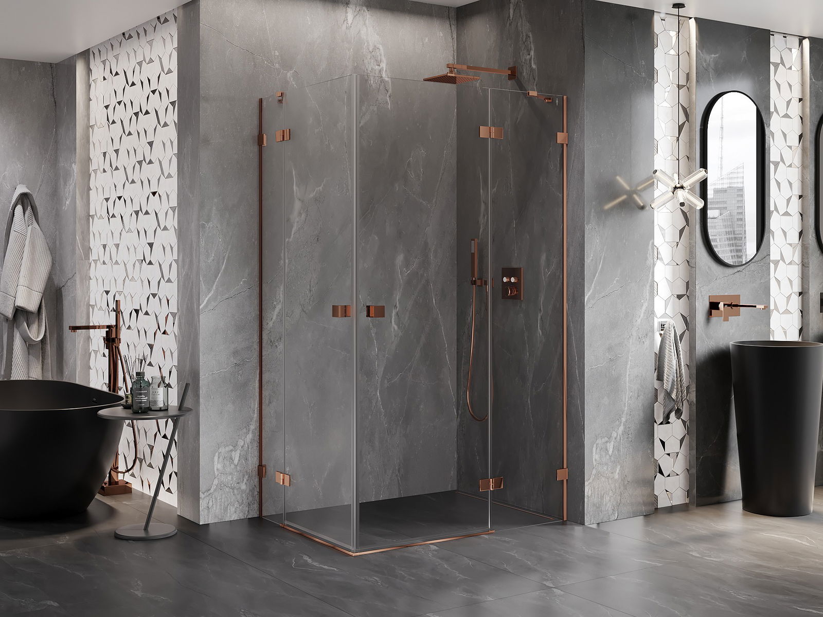 Mexen Lunar Duo Right Hinged Shower Cabin 120 x 80 cm, Transparent, Pink Gold - 834-120P-080L-60-00