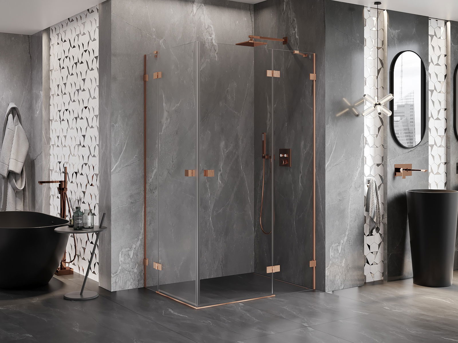 Mexen Lunar Duo shower cabin with right hinged door 110 x 75 cm, transparent, brushed copper - 834-110P-075L-65-00