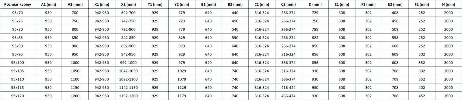 Size: 95x80 cm (right door 95 cm, left door 80 cm)