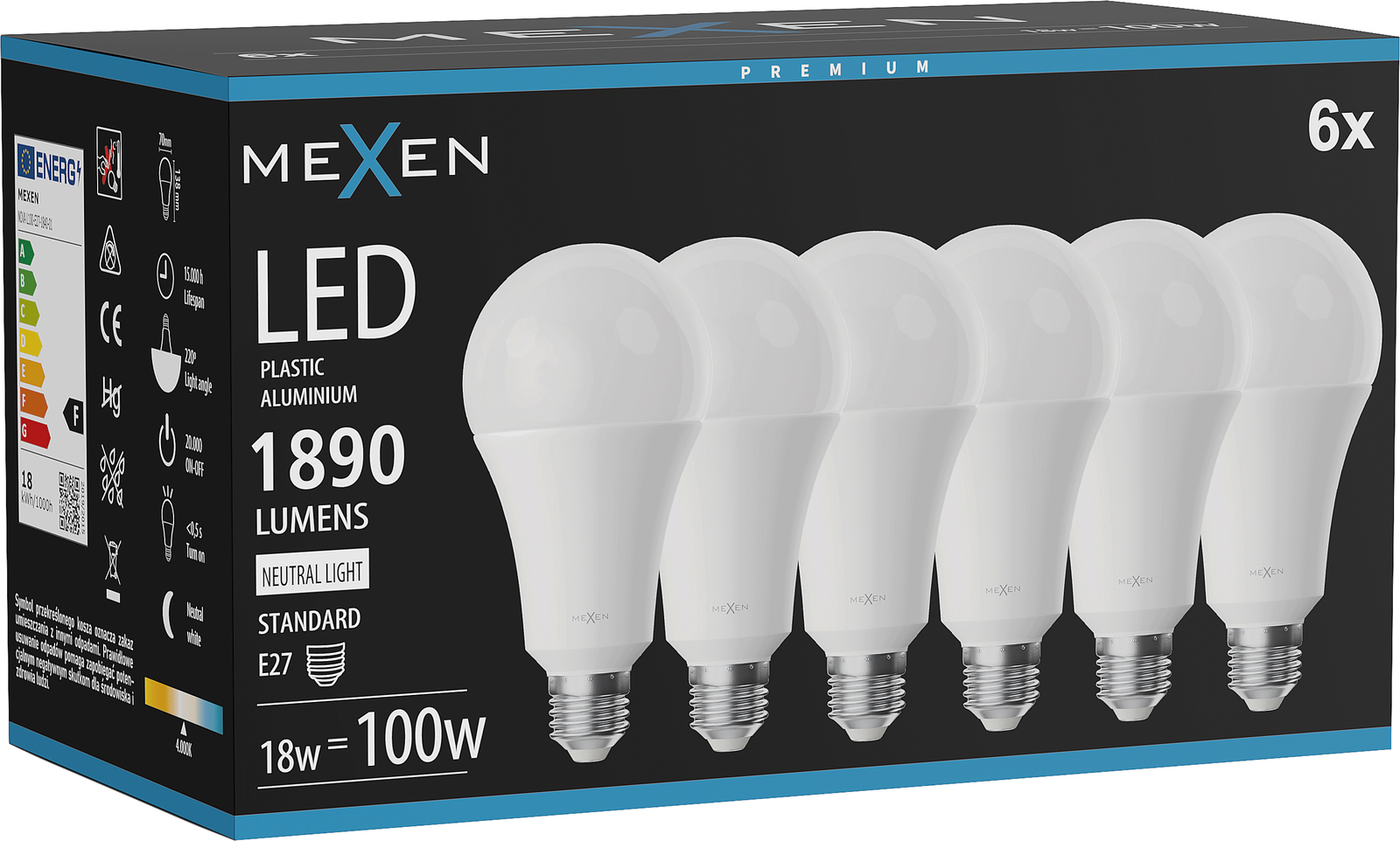 Energy consumption: 18 kWh/1000 h