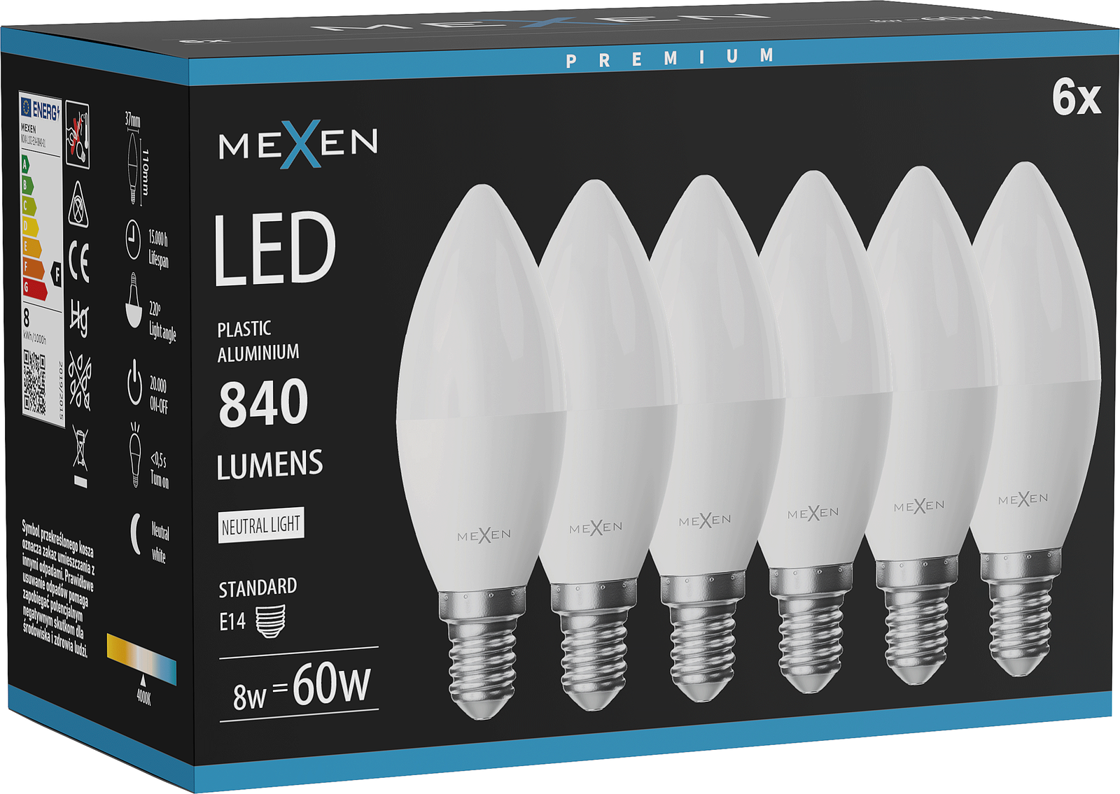 Equivalent power: 60 W