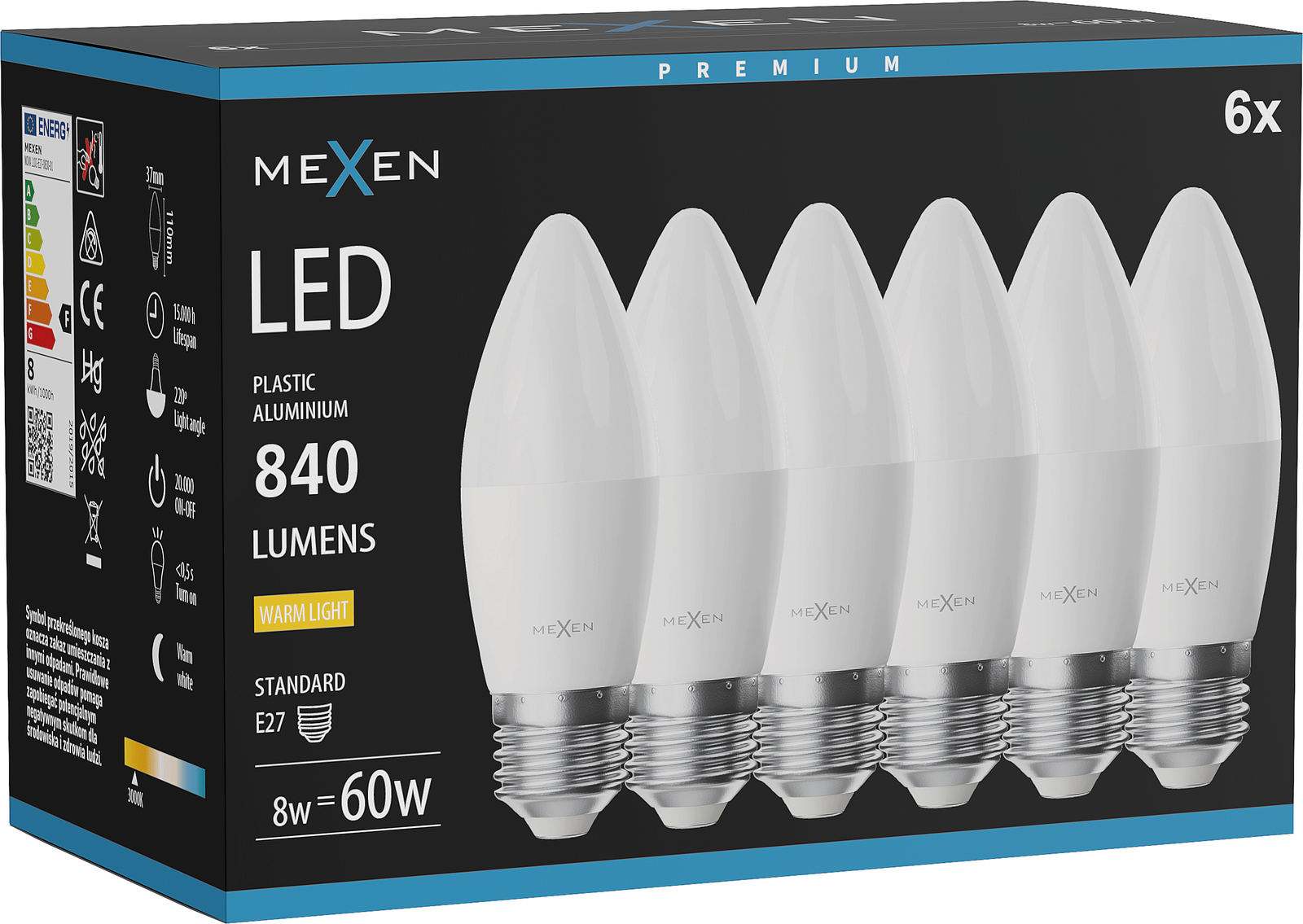 Equivalent power: 60 W