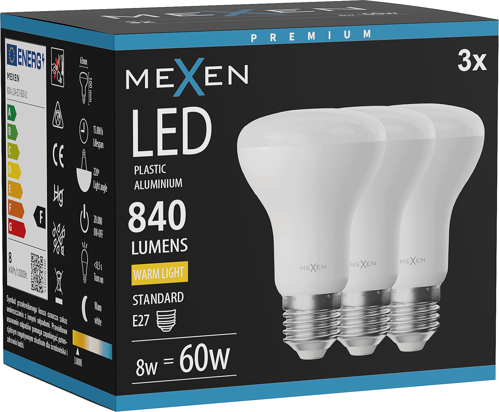 Mexen Nova 3x LED Bulb E27, R63, 8W, Warm - 3000K, 840 lm - L104-E27-0830-01x03