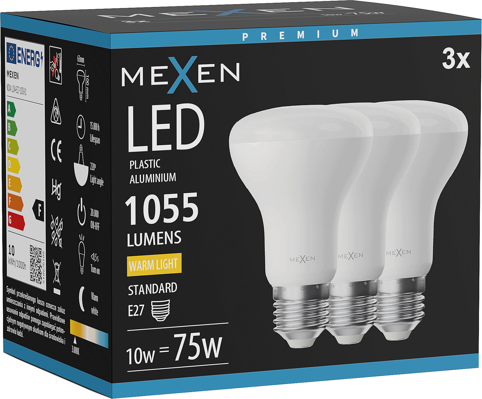 Mexen Nova 3x LED Bulb E27, R63, 10W, Warm - 3000K, 1055 lm - L104-E27-1030-01x03