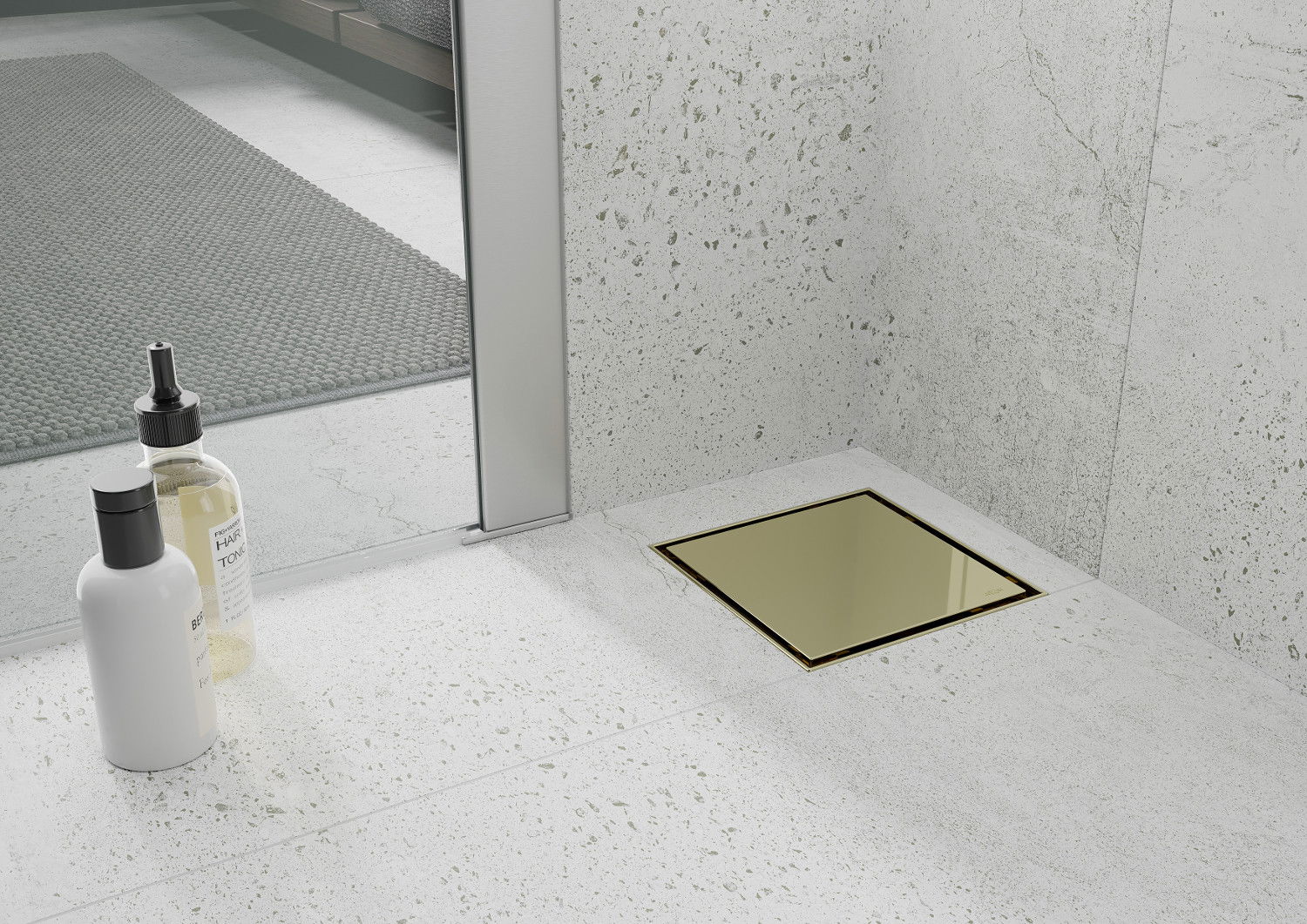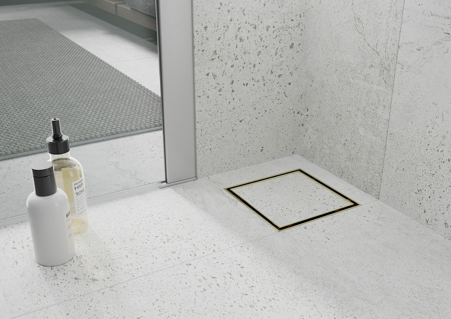 The linear drain is mounted at a depth of only 52 mm. The low depth allows for easier surface preparation for the drain installation and easy leveling, ensuring high aesthetics and effective water drainage.