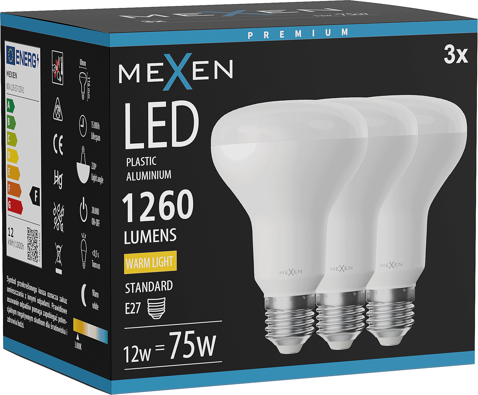 Mexen Nova 3x LED Bulb E27, R80, 12W, Warm - 3000K, 1260 lm - L105-E27-1230-01x03