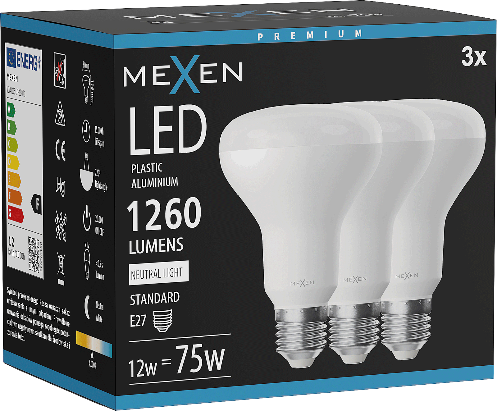 Mexen Nova 3x LED Bulb E27, R80, 12W, Neutral - 4000K, 1260 lm - L105-E27-1240-01x03