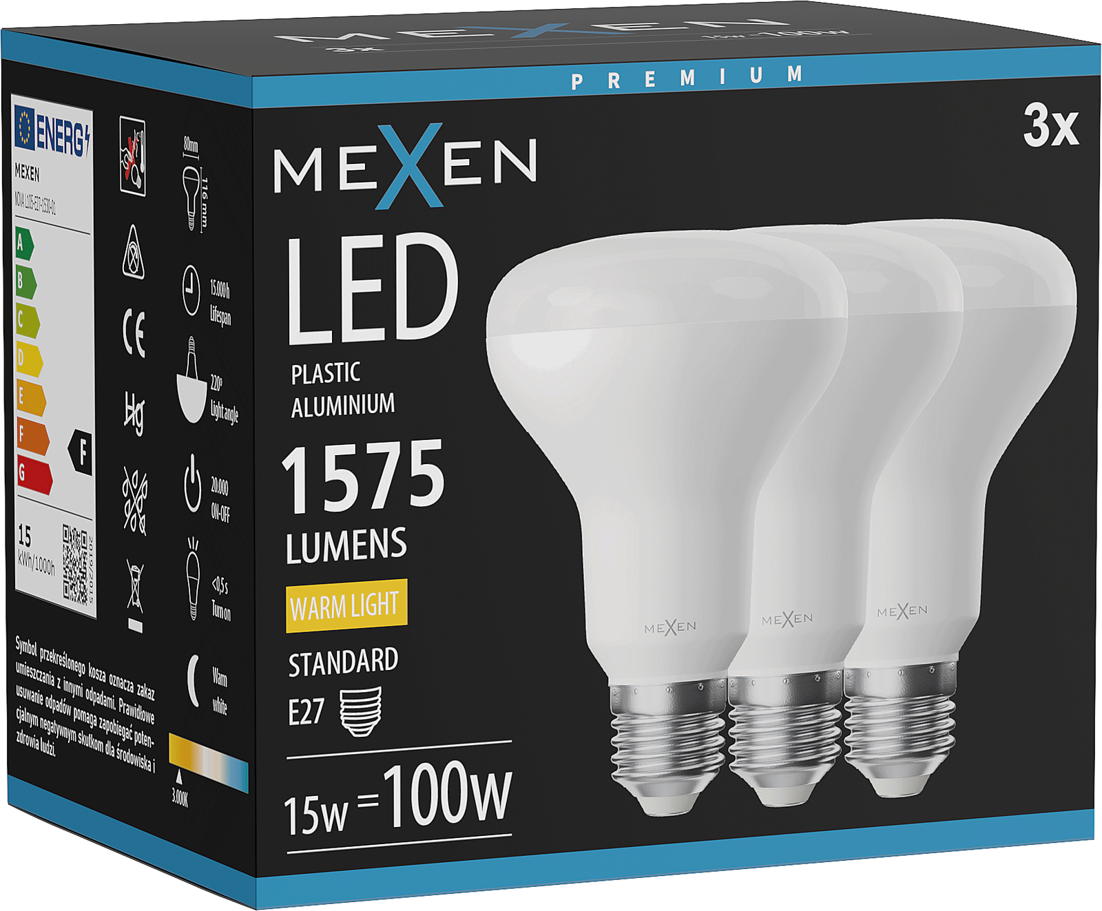 Mexen Nova 3x LED Bulb E27, R80, 15W, Warm - 3000K, 1575 lm - L105-E27-1530-01x03
