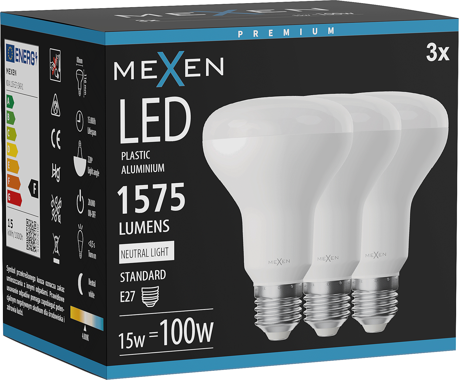 Mexen Nova 3x LED Bulb E27, R80, 15W, Neutral - 4000K, 1575 lm - L105-E27-1540-01x03