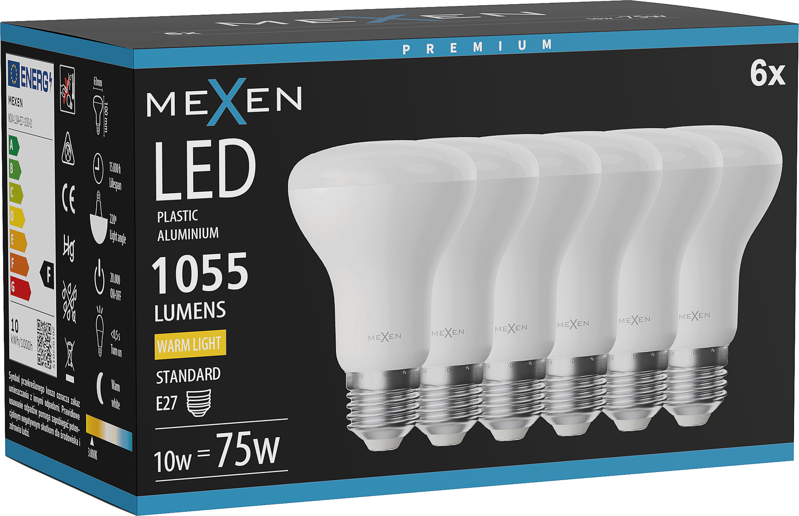 Mexen Nova 6x LED Bulb E27, R63, 10W, Warm - 3000K, 1055 lm - L104-E27-1030-01x06