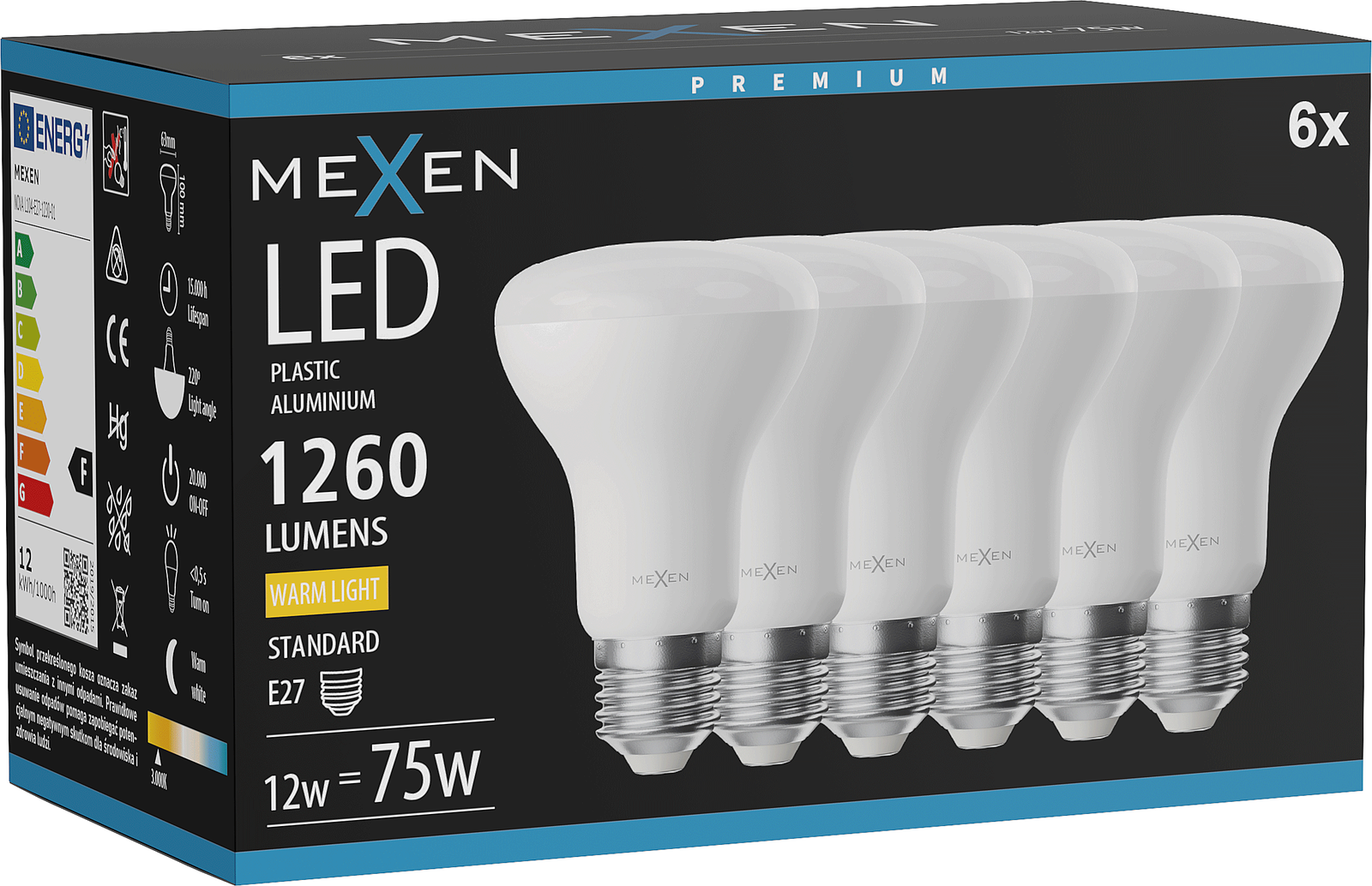 Mexen Nova 6x LED Bulb E27, R63, 12W, Warm - 3000K, 1260 lm - L104-E27-1230-01x06
