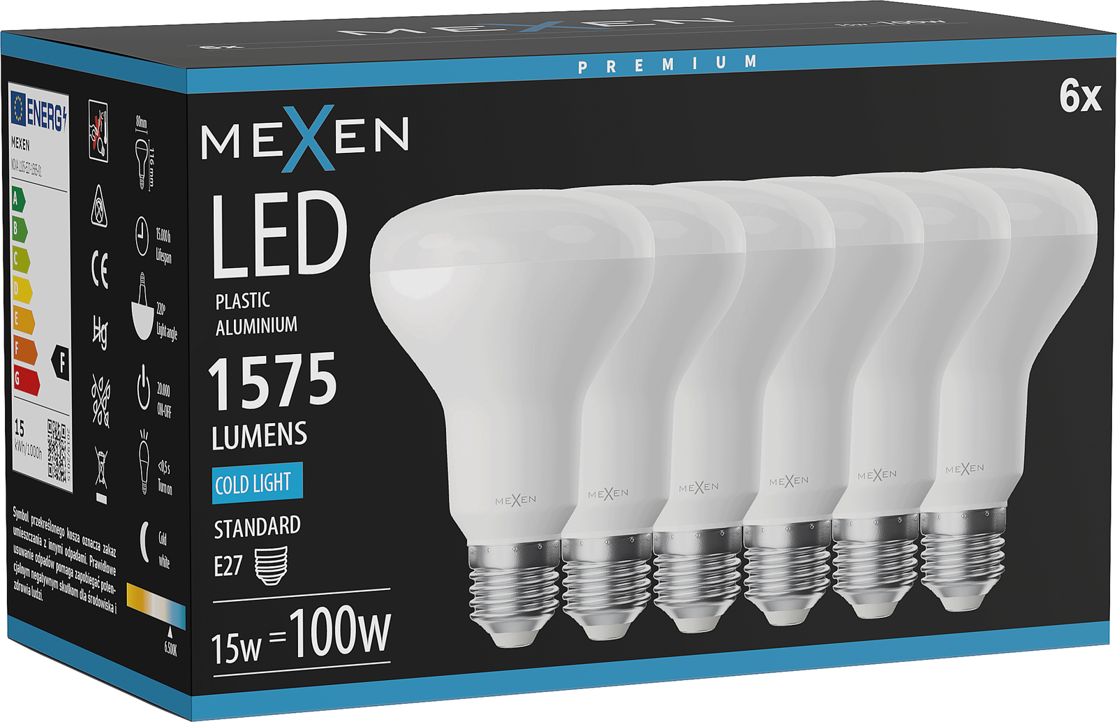 Mexen Nova 6x LED Bulb E27, R80, 15W, Cool - 6500K, 1575 lm - L105-E27-1565-01x06