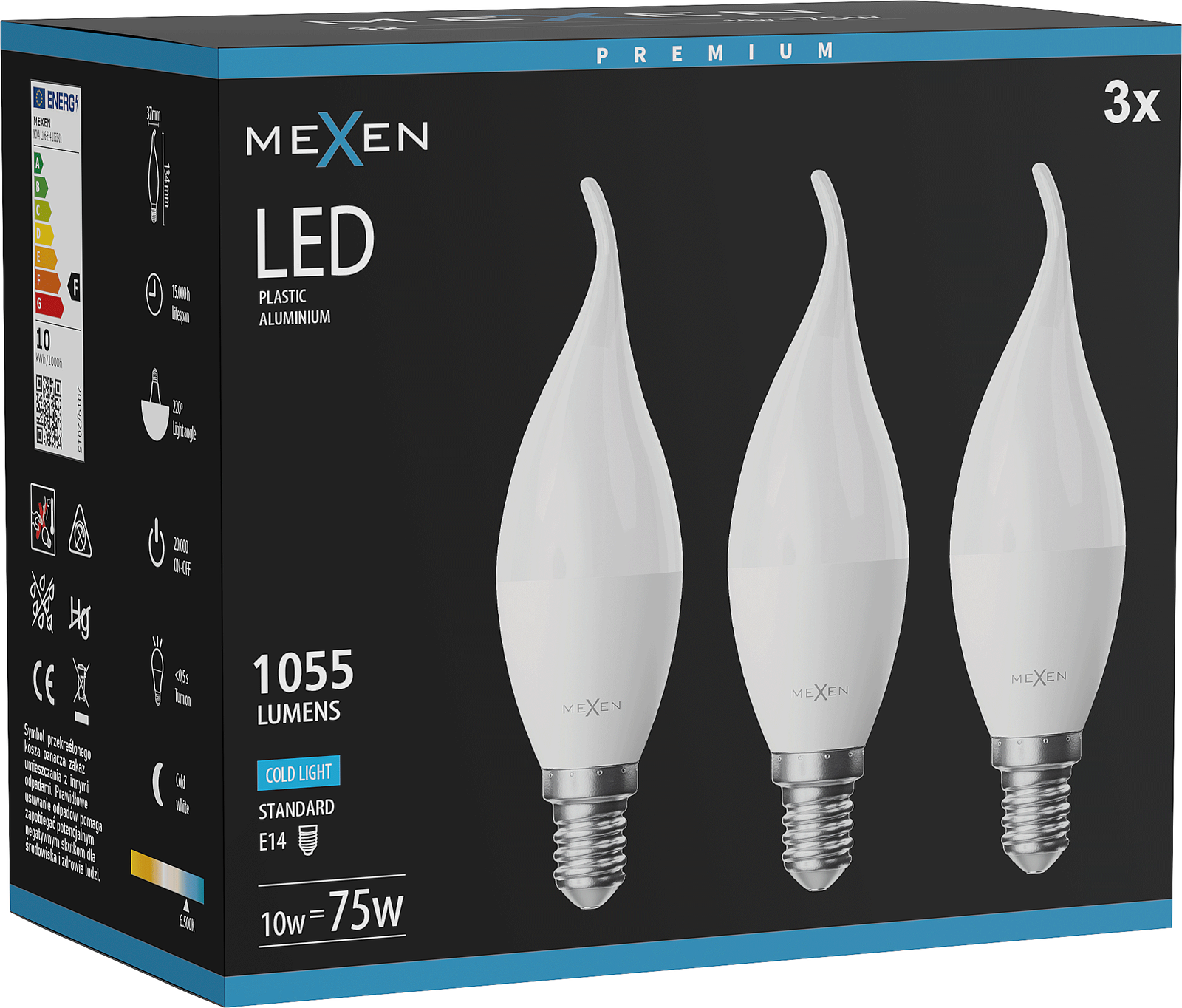 Mexen Nova 3x LED Bulb Flame E14, C37, 10W, Cold - 6500K, 1055 lm - L106-E14-1065-01x03