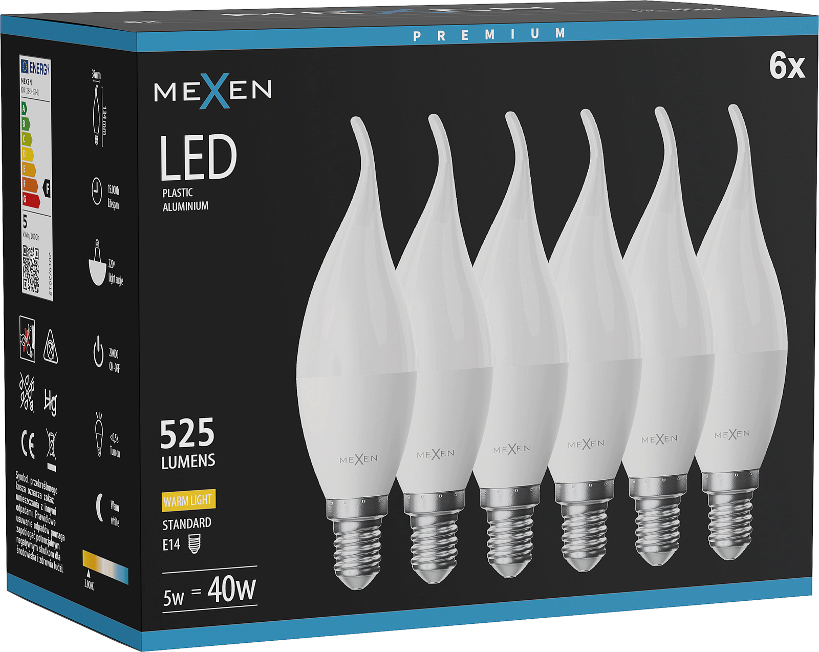Mexen Nova 6x LED Bulb Flame E14, C37, 5W, Warm - 3000K, 525 lm - L106-E14-0530-01x06