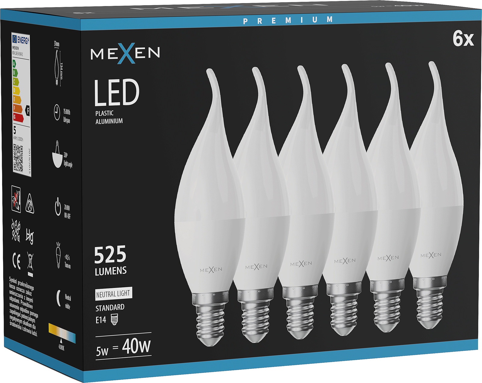 Mexen Nova 6x LED bulb candle E14, C37, 5W, Neutral - 4000K, 525 lm - L106-E14-0540-01x06