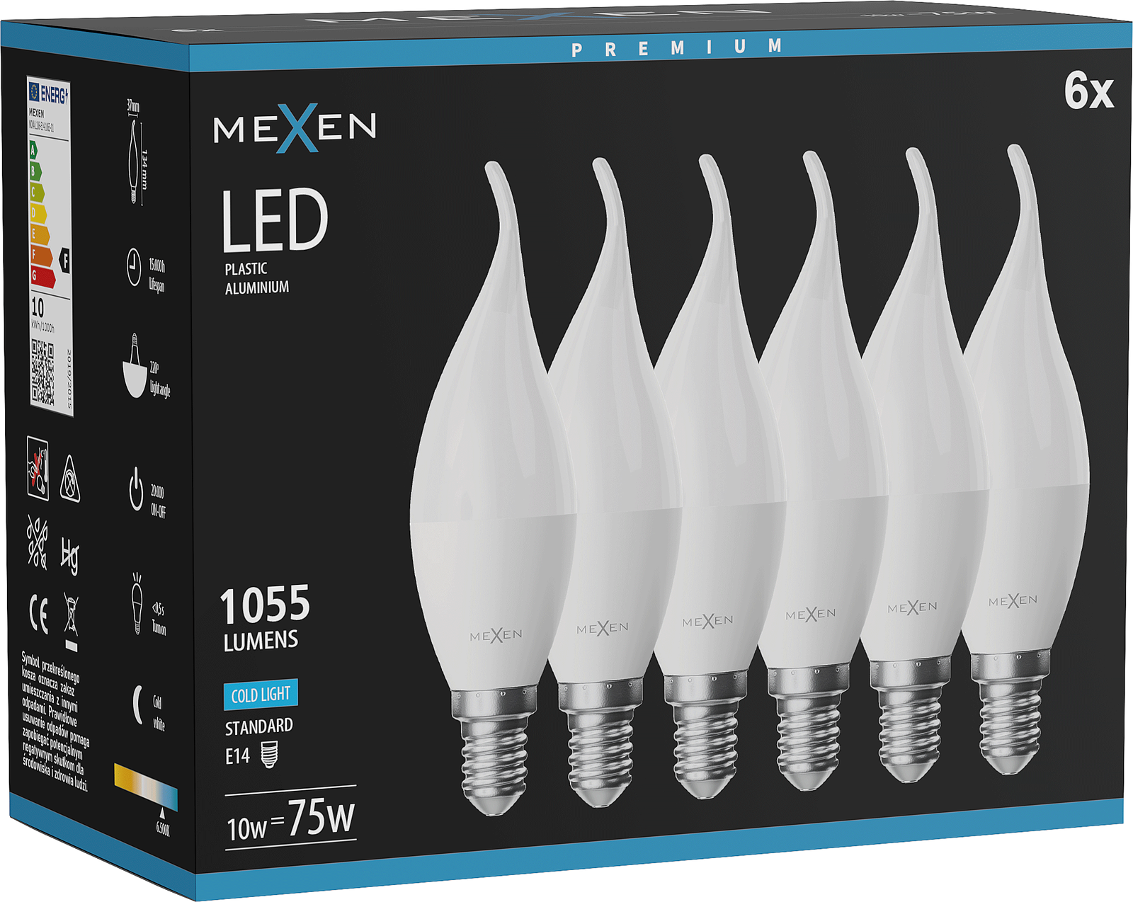 Mexen Nova 6x LED Bulb Flame E14, C37, 10W, Cold - 6500K, 1055 lm - L106-E14-1065-01x06