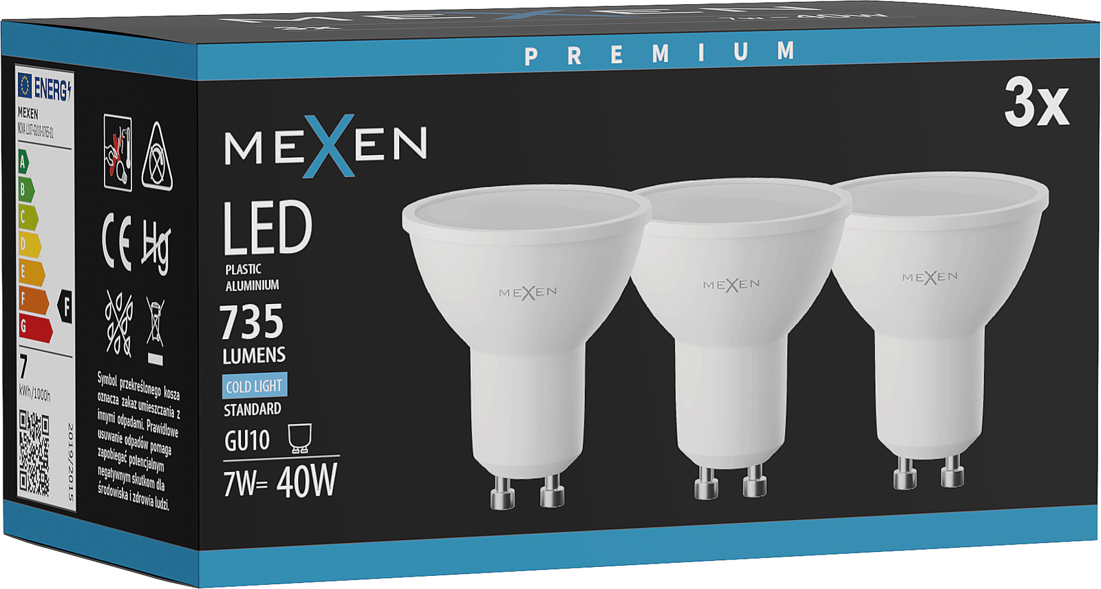 Mexen Nova 3x LED Bulb GU10, 7W, Cold - 6500K, 735 lm - L107-GU10-0765-01x03