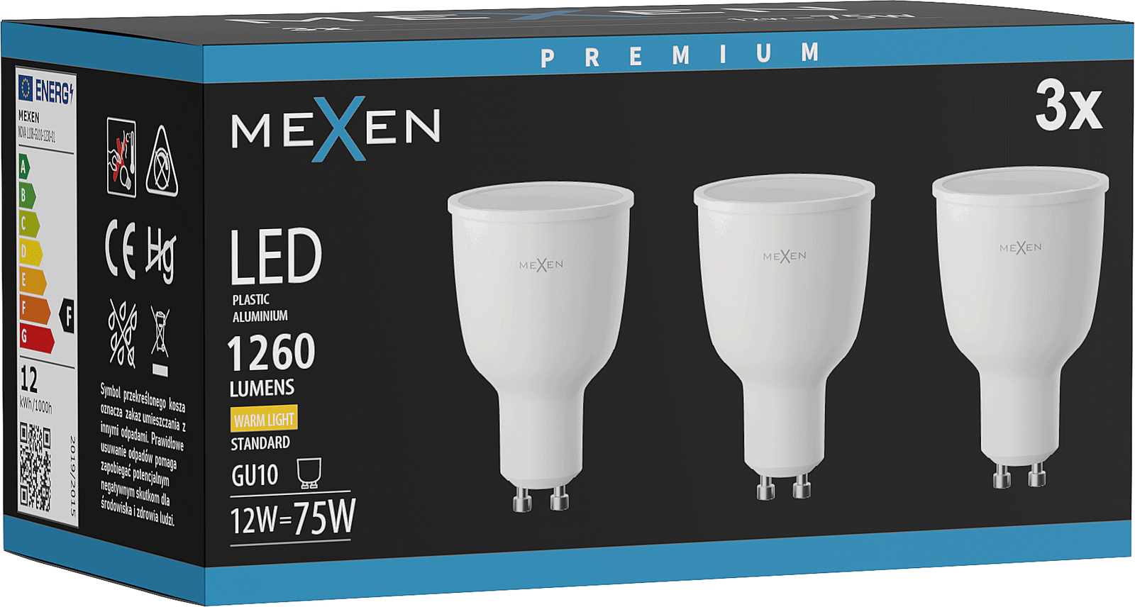 Mexen Nova 3x LED Bulb GU10, 12W, Warm - 3000K, 1260 lm - L108-GU10-1230-01x03
