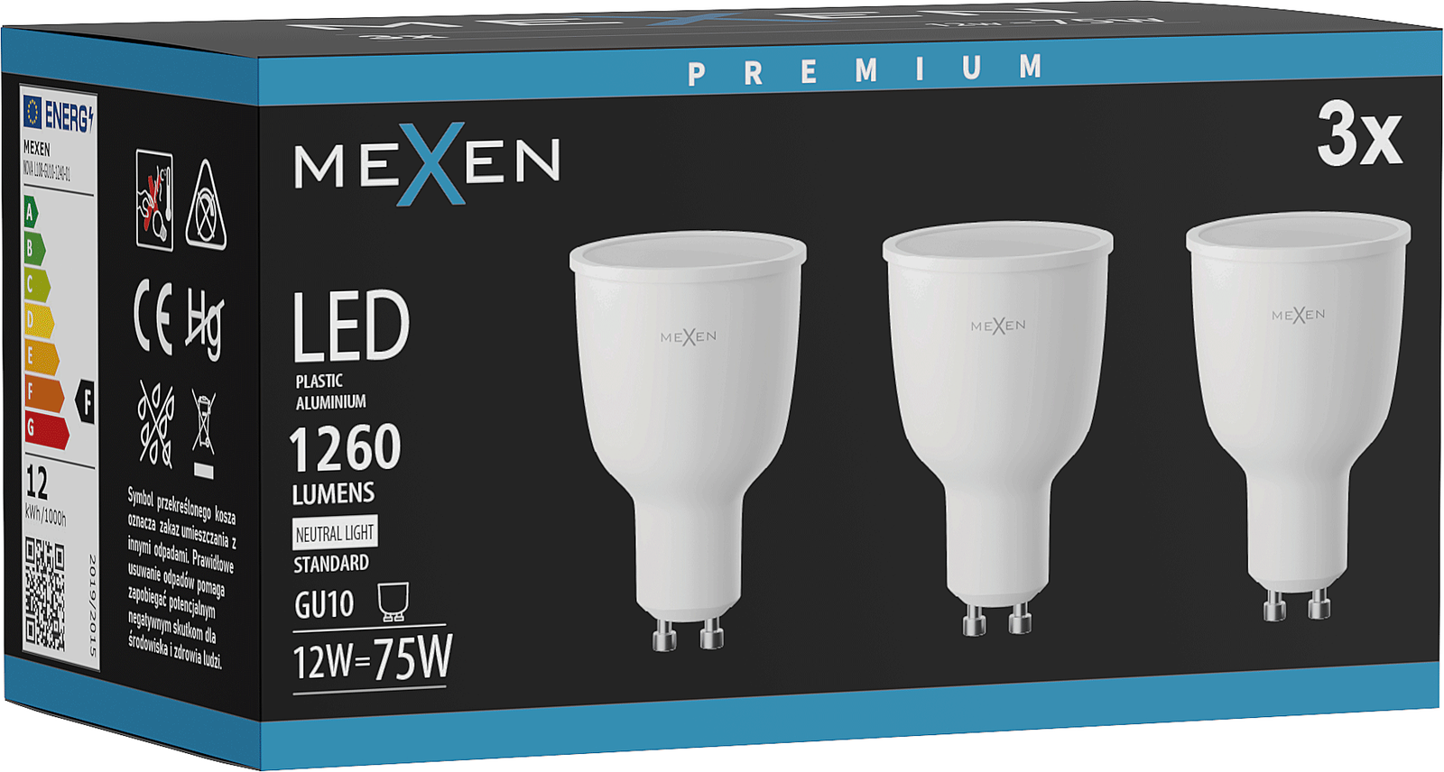 Mexen Nova 3x LED Bulb GU10, 12W, Neutral - 4000K, 1260 lm - L108-GU10-1240-01x03