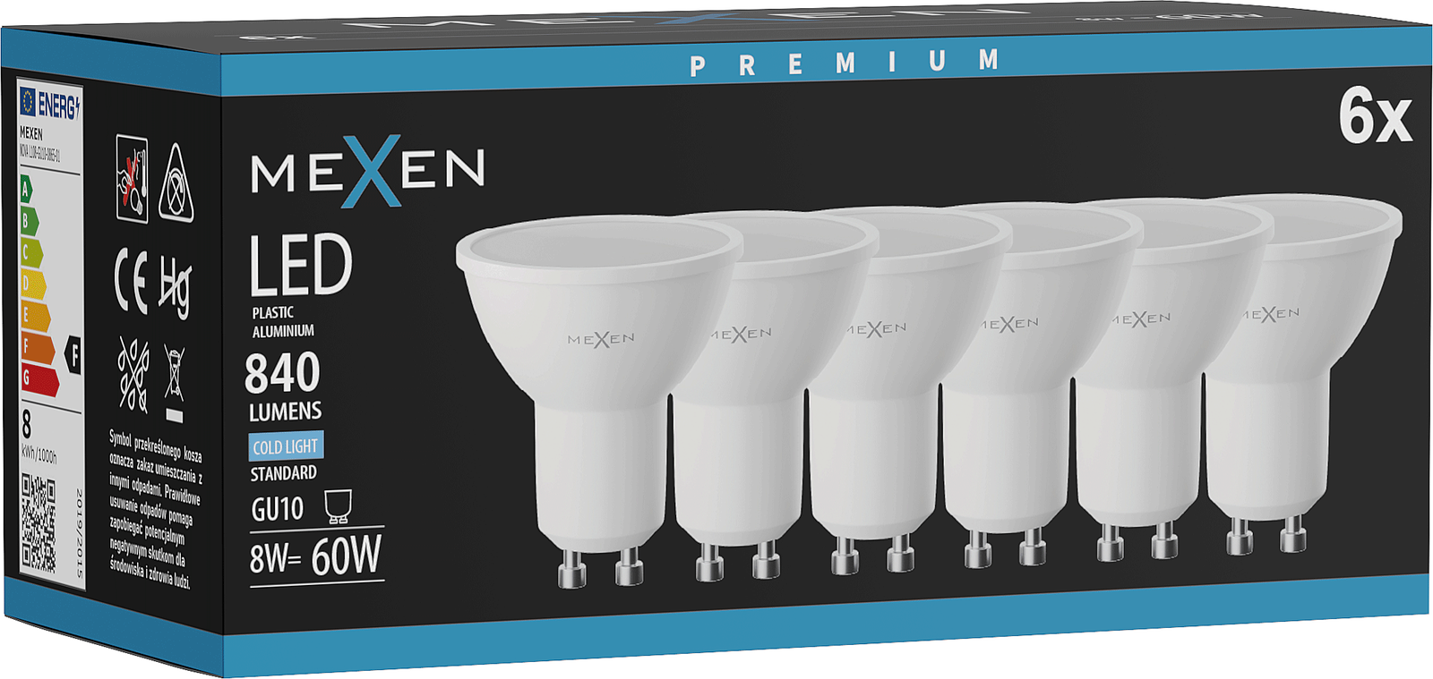 Mexen Nova 6x LED Bulb GU10, 8W, Cool - 6500K, 840 lm - L108-GU10-0865-01x06
