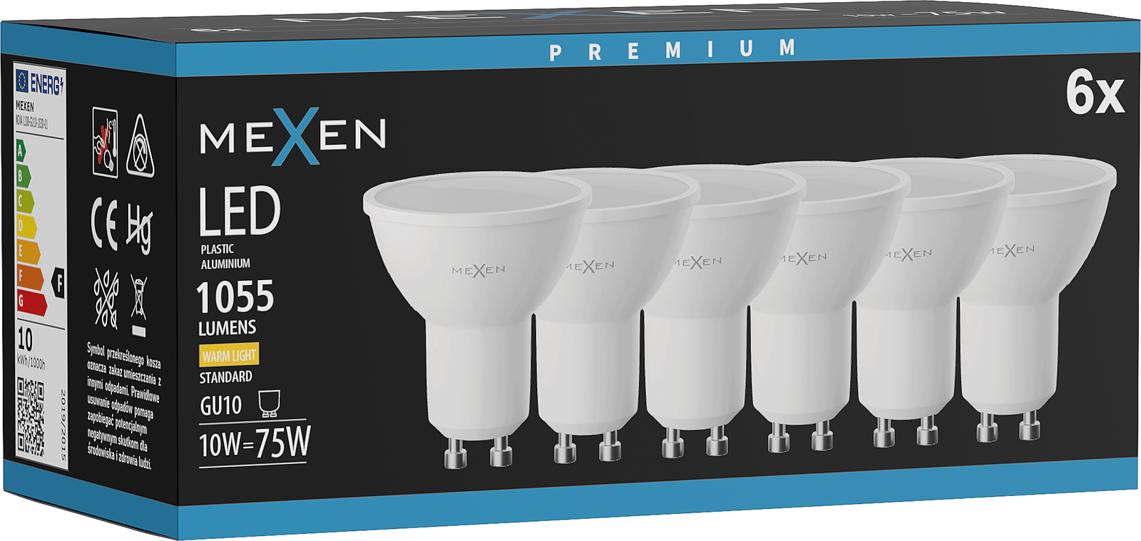 Mexen Nova 6x LED Bulb GU10, 10W, Warm - 3000K, 1055 lm - L108-GU10-1030-01x06
