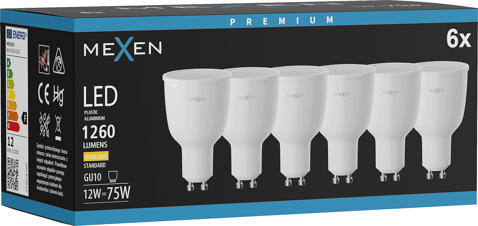 Mexen Nova 6x LED Bulb GU10, 12W, Warm - 3000K, 1260 lm - L108-GU10-1230-01x06