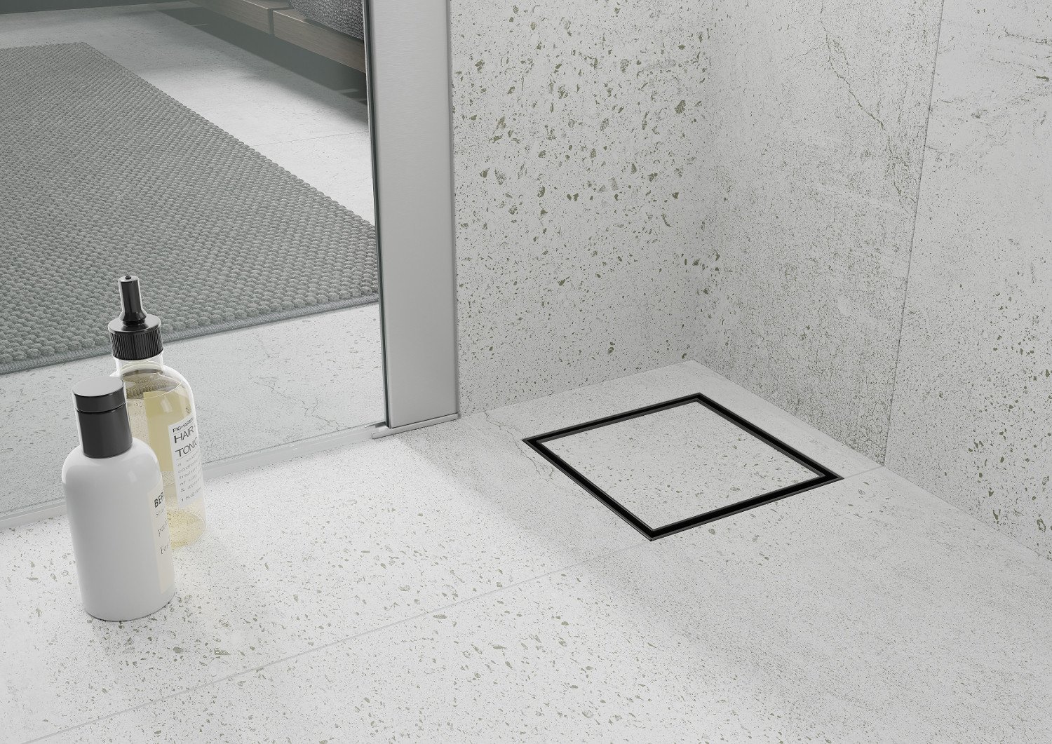 The linear drain is mounted at a depth of only 52 mm. The low depth allows for easier surface preparation for the drain installation and easy leveling, ensuring high aesthetics and effective water drainage.