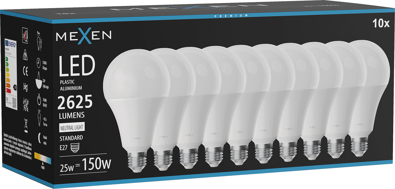 The bulb reaches full brightness immediately upon switching on, with no "warming up" needed. It provides full, even illumination of the room within 0.5 seconds. This makes it extremely convenient for everyday use. It is the ideal choice wherever a quick and reliable light source is important.