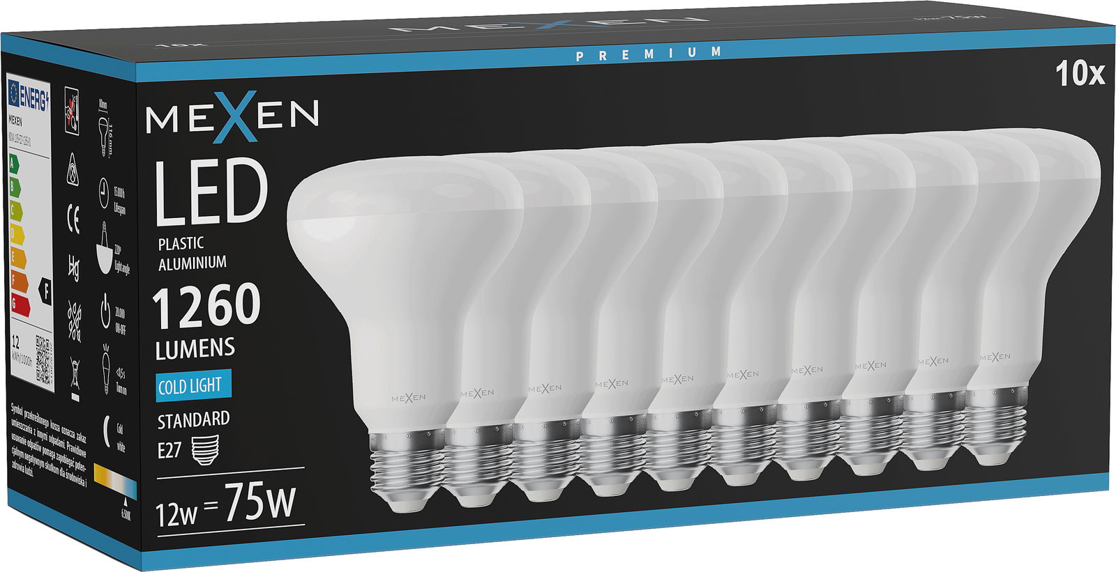 Mexen Nova 10x LED Bulb E27, R80, 12W, Cool - 6500K, 1260 lm - L105-E27-1265-01x10