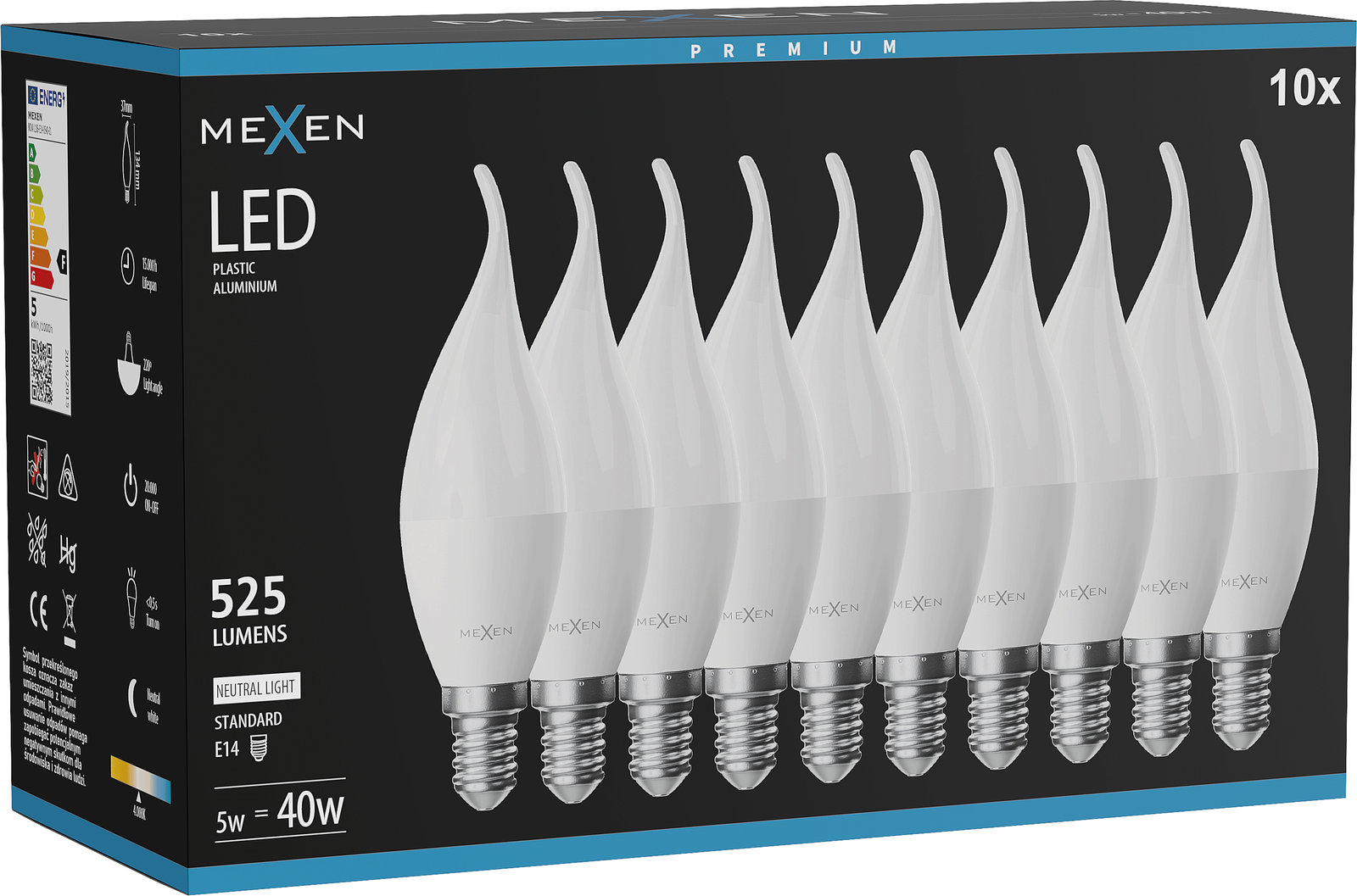 Mexen Nova 10x LED Bulb Flame E14, C37, 5W, Neutral - 4000K, 525 lm - L106-E14-0540-01x10