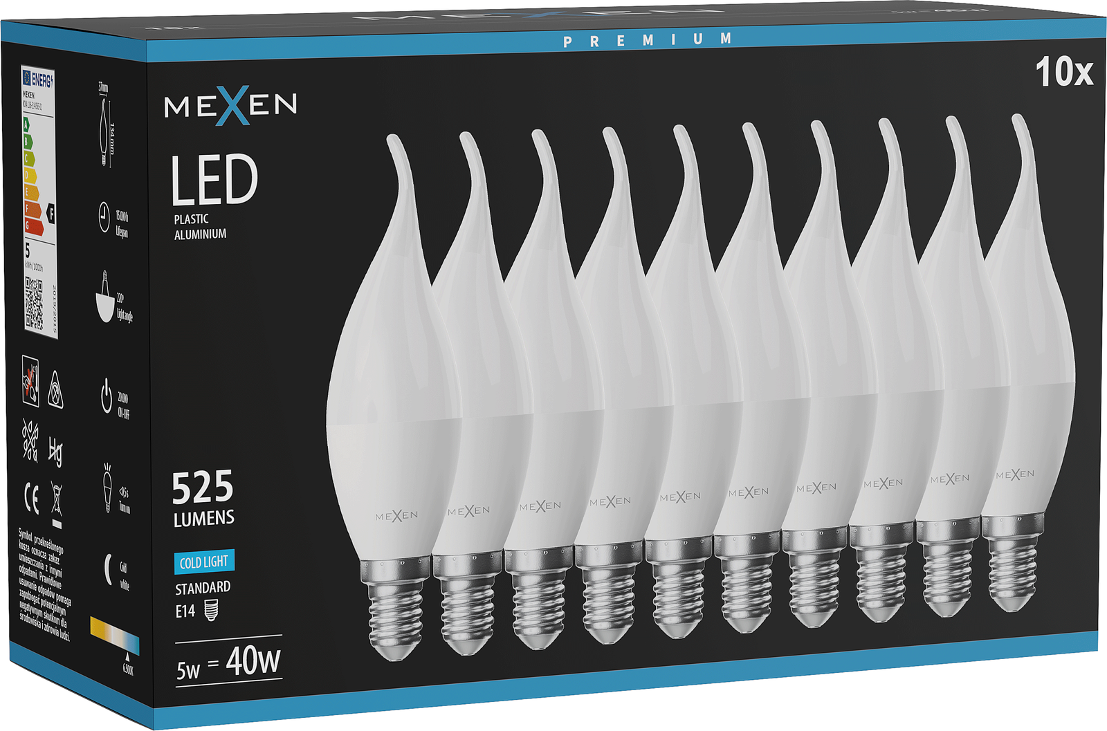 Mexen Nova 10x LED Bulb Flame E14, C37, 5W, Cold - 6500K, 525 lm - L106-E14-0565-01x10