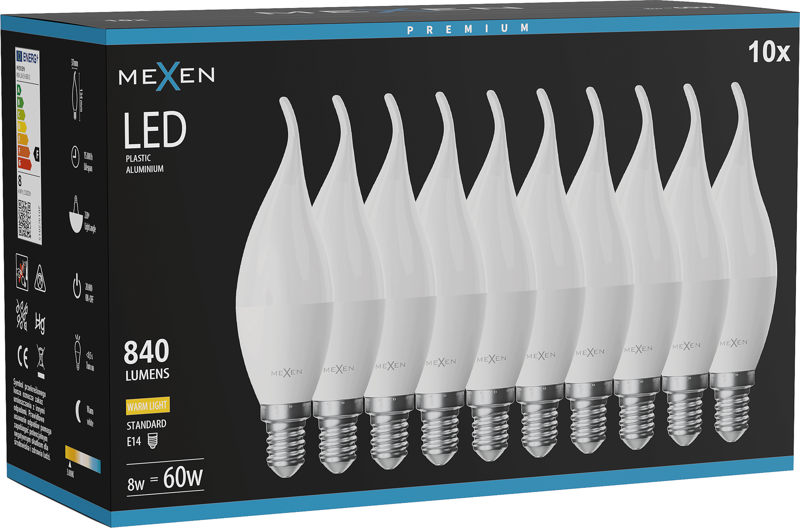 Mexen Nova 10x LED Bulb Candle E14, C37, 8W, Warm - 3000K, 840 lm - L106-E14-0830-01x10