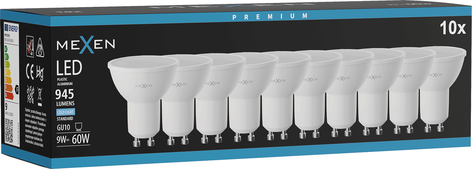 Mexen Nova 10x LED GU10 Bulb, 9W, Cold - 6500K, 945 lm - L108-GU10-0965-01x10