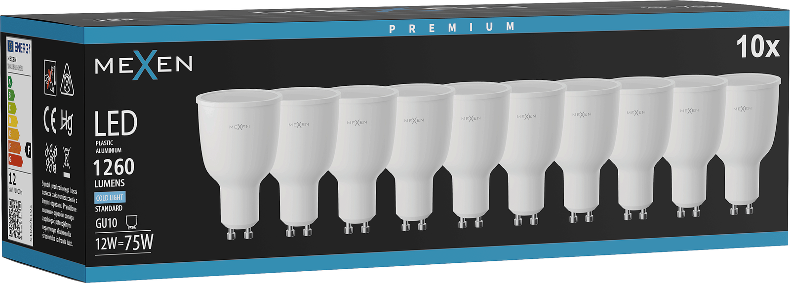 Mexen Nova 10x LED Bulb GU10, 12W, Cool - 6500K, 1260 lm - L108-GU10-1265-01x10