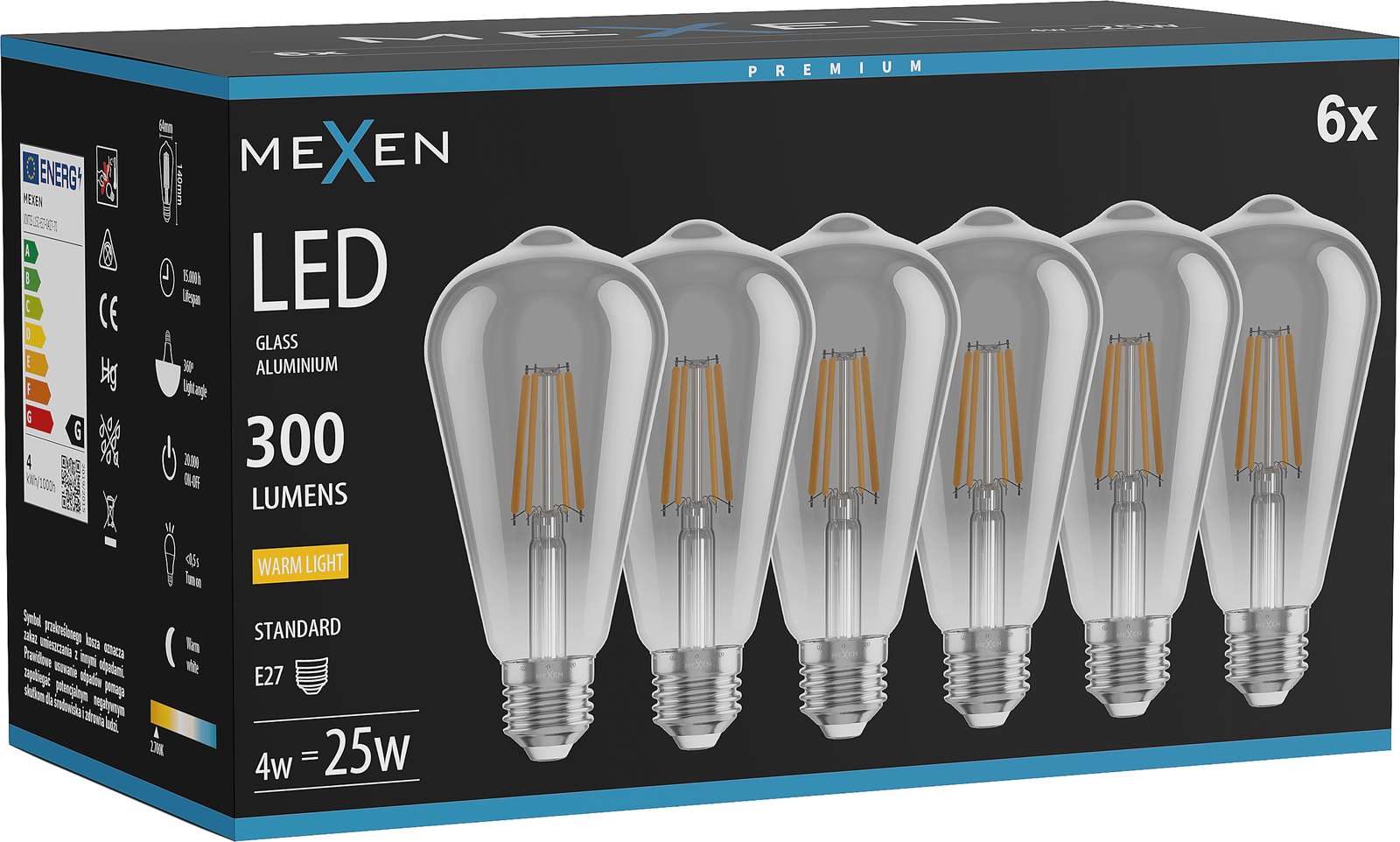 Mexen Vintis 6x LED Filament Bulb E27, ST64, 4W, Warm - 2700K, 300 lm, smoke - L152-E27-0427-70x06