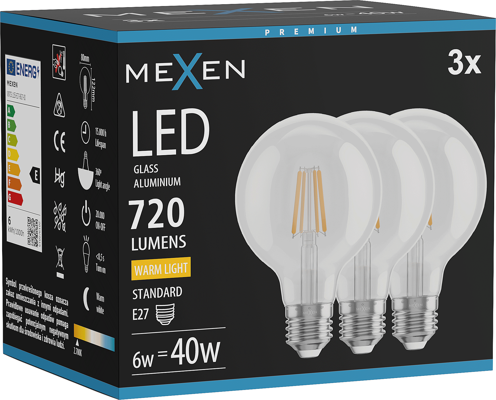 Energy consumption: 6 kWh/1000 h