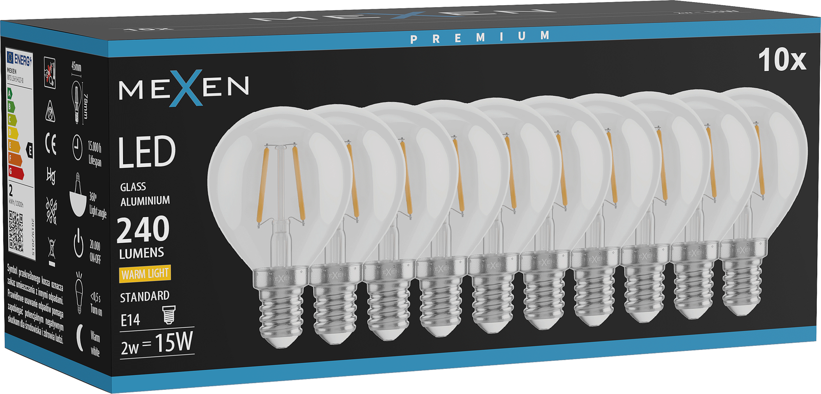 Mexen Vintis 10x LED filament bulb E14, G45, 2W, Warm - 2700K, 240 lm, clear - L156-E14-0227-00x10
