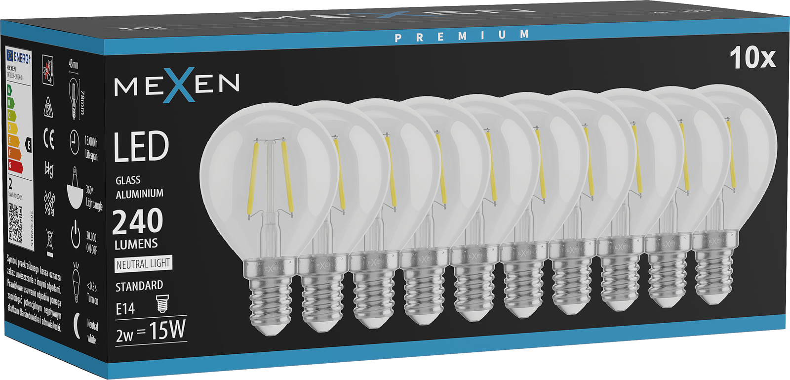 Mexen Vintis 10x LED Filament Bulb E14, G45, 2W, Neutral - 4000K, 240 lm, clear - L156-E14-0240-00x10