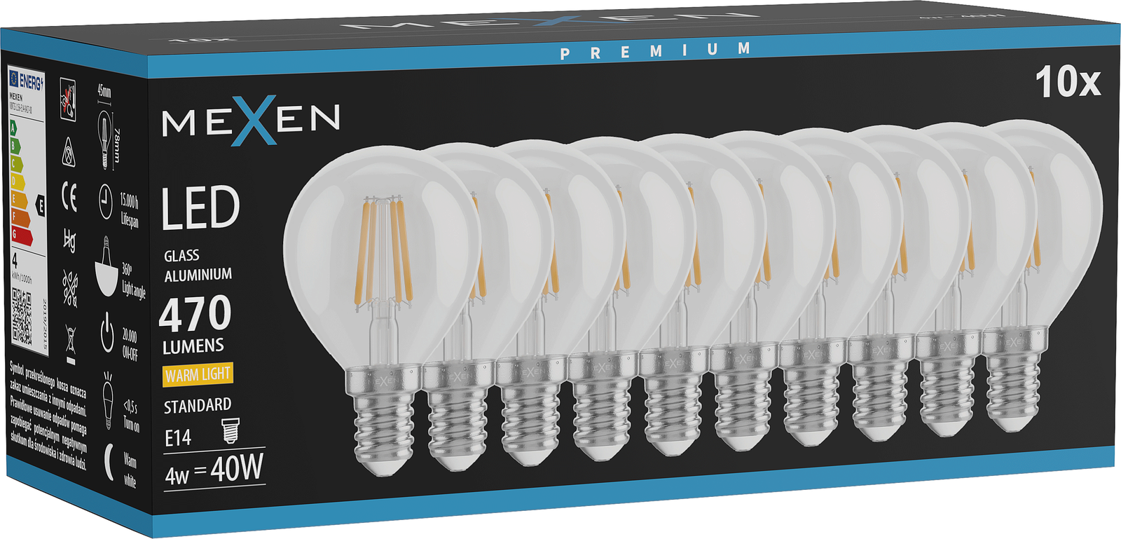 Mexen Vintis 10x LED Filament Bulb E14, G45, 6W, Warm - 2700K, 720 lm, clear - L156-E14-0627-00x10
