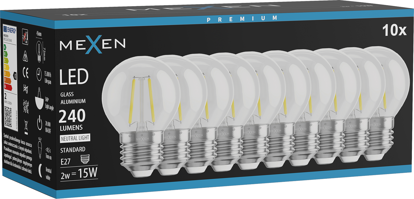 Mexen Vintis 10x LED Filament Bulb E27, G45, 2W, Neutral - 4000K, 240 lm, clear - L156-E14-0227-00x10 - L156-E27-0240-00x10