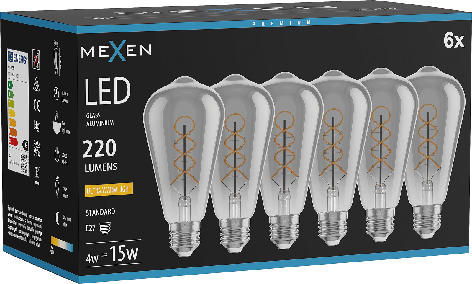 Mexen Vintis 6x LED Filament Spiral Bulb E27, ST64, 4W, Warm - 2200K, 220 lm, Smoke - L162-E27-0422-70x06
