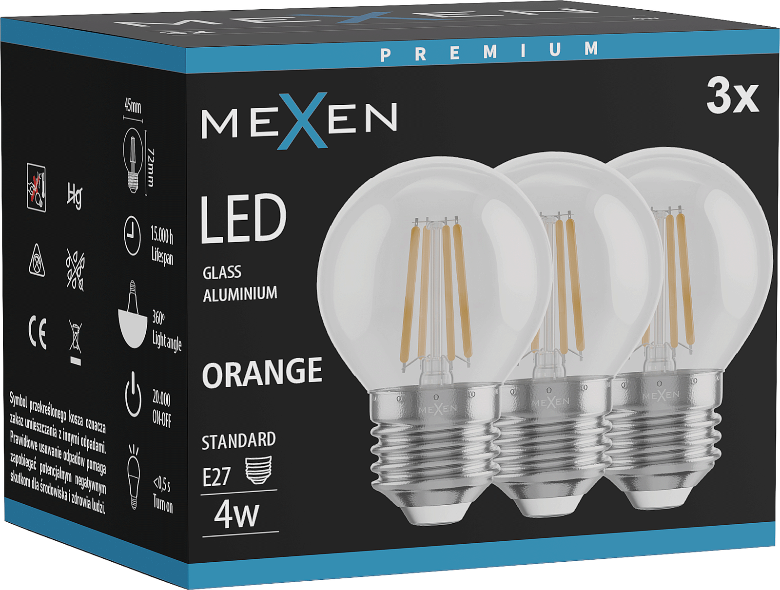 Mexen Vintis 3x LED Filament Bulb E27, G45, 4W, 55 lm, orange - L156-E27-04XX-48x03